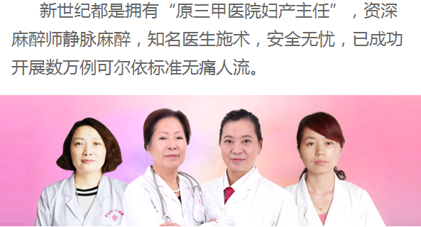 在新世纪的计划生育室里,汇集一大批全国著名的医疗医生,在这批拥有丰富临床经验、管理经验以及高尚医德医风的妇科医生带领下,实施人流术的手术医师,都是具备至少20年以上临床手术经验,达到副主任医师级别,每一位手术医师都有良好的手术安全记录。