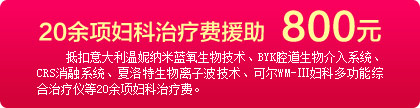 1、在活动一家指定医疗机构——郑州新世纪女子医院抵扣意大利温妮纳米蓝氧生物技术、BYK腔道生物介入系统、CRS消融系统、夏洛特生物离子波技术、可尔WM-Ⅲ妇科多功能综合治疗仪等20余项妇科治疗费。