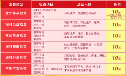 优惠2、6大妇科检查套餐仅收10元