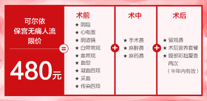 优惠5、可尔依保宫无痛人流限价480元