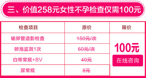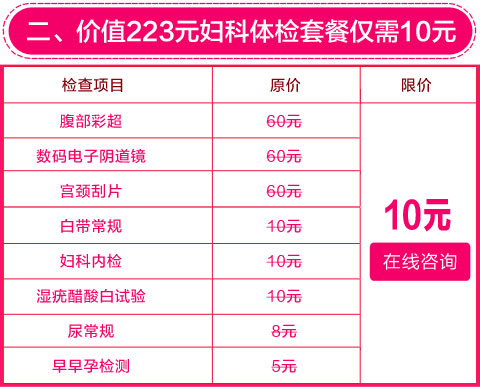 6月特惠,健康有礼。2016年6月1日-6月30日,郑州新世纪女子医院推出“10元体检更优惠 半价诊疗更省钱”,活动期间来院挂号即送200元话费,价值223元妇科检查套餐仅需10元,价值258元的女性不孕检查仅需100元,人流限价480元,妇科治疗费、手术费全部半价。