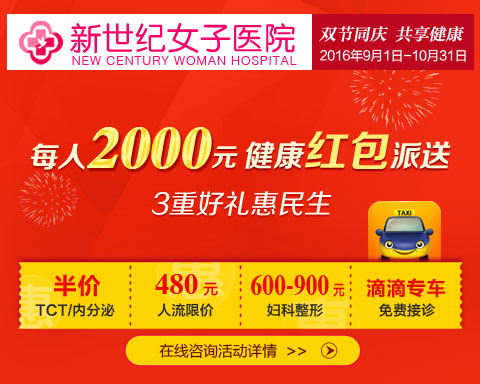 前言:值此中秋节、国庆节来临之际,郑州新世纪女子医院浓情推出“双节同庆 共享健康”公益助医活动,2000元红包大派送,3重好礼惠民生:妇科检查、治疗、手术红包免费派送,TCT/内分泌检查半价,可尔依无痛人流限价480元,妇科整形限价600-900元,为河南女性解决健康难题。