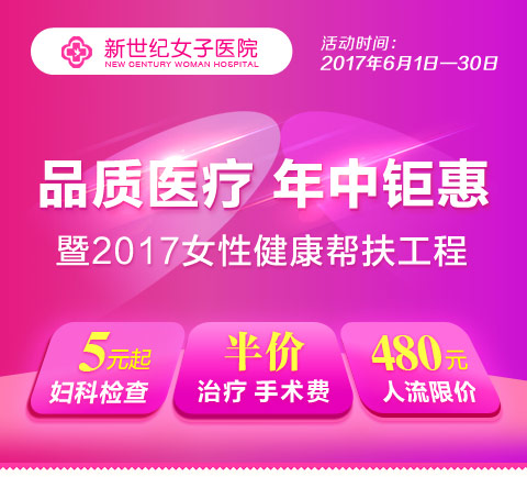 前言:2017年6月1日-6月30日,郑州新世纪女子医院于推出“品质医疗 年中钜惠”暨2017女性健康帮扶工程活动,妇科检查5元起,人流限价480元,私密整形手术费、治疗费、手术费半价等惠民活动,为河南女性健康保驾护航。
