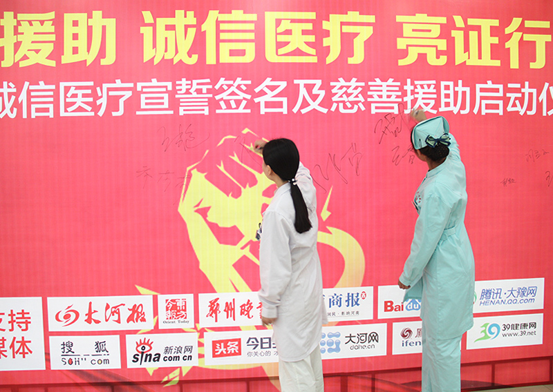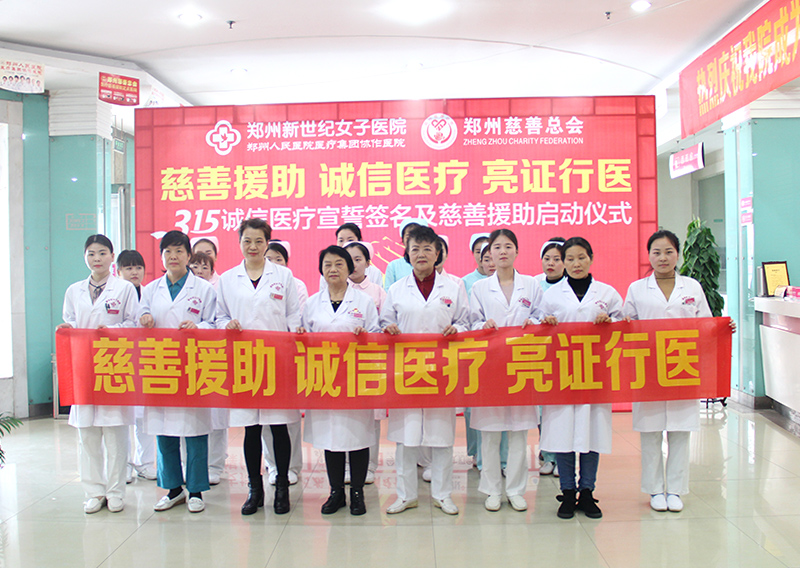 2018年3月14日下午,以"慈善援助 诚信医疗 亮证行医 "为主题的3.15诚信倡导宣传活动在郑州新世纪女子医院一楼顺利举行,院长苏朝女士及医务人员代表均到场参加,并接受市民及媒体公开监督.